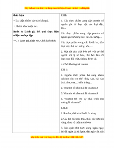 Bước 1: GV chuyển giao nhiệm vụ học II. Các nhóm chất dinh dưỡng trong tập
