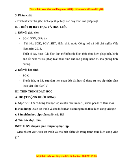 - Tài liệu: SGK, SGV, SBT, Hiến pháp nước Cộng hoà xã hội chủ nghĩa Việt