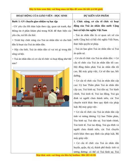 - GV yêu cầu HS thảo luận theo cặp, quan sát tranh, đọc động của Toà án nhân dân nước Cộng