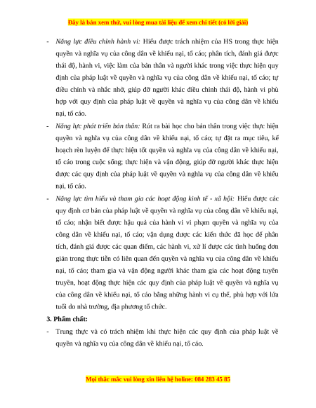- Nhận biết được hậu quả của hành vi vi phạm quyền và nghĩa vụ của công dân về khiếu nại, tố cáo.