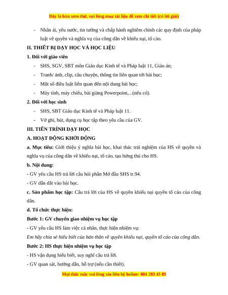 nghĩa vụ của công dân về khiếu nại, tố cáo, tạo hứng thú cho HS. b. Nội dung: