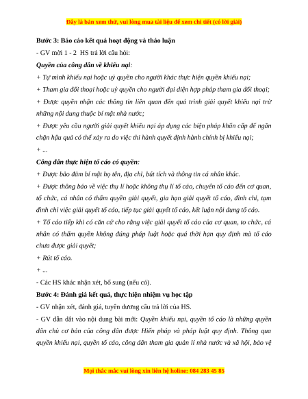 - GV dẫn dắt vào nội dung bài mới: Quyền khiếu nại, quyền tố cáo là những quyền