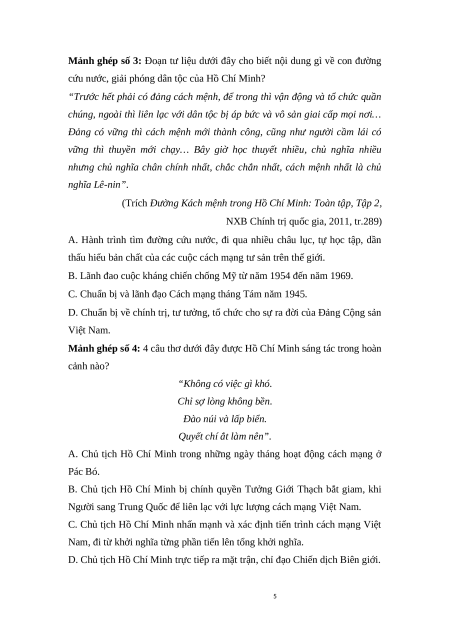 lời một số câu hỏi trắc nghiệm liên quan đến chủ đề Hồ Chí Minh – anh