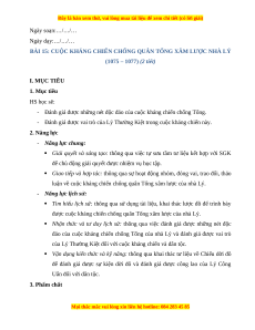 - Đánh giá được những nét độc đáo của cuộc kháng chiến chống Tống.