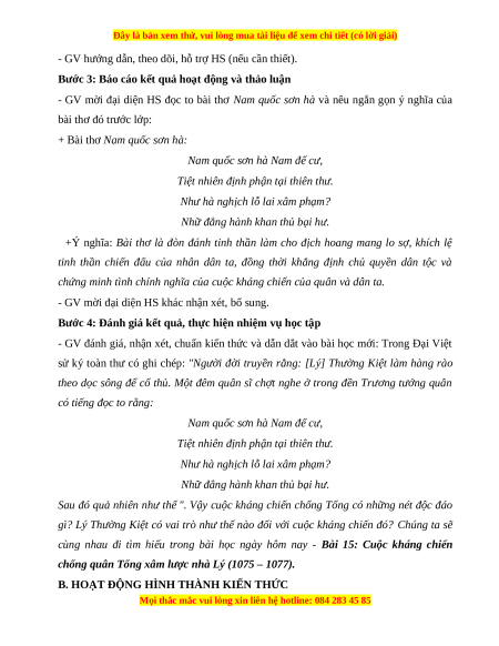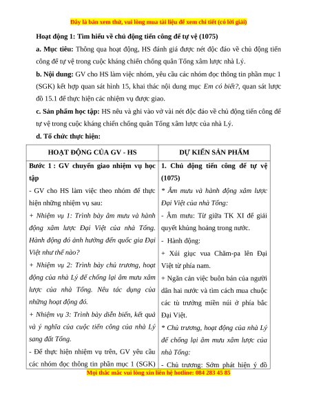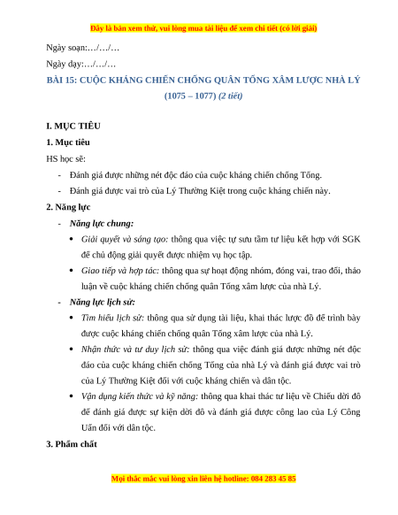 Giáo án Bài 15 Lịch sử 7 Cánh diều (Phiên bản 2): Cuộc kháng chiến chống quân Tống xâm lược của nhà Lý (1075-1077)