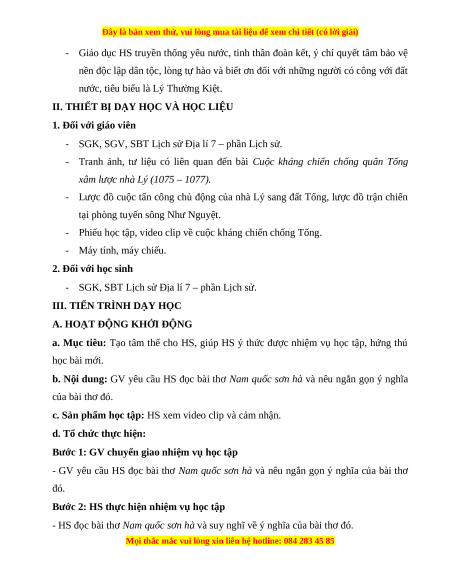 b. Nội dung: GV yêu cầu HS đọc bài thơ Nam quốc sơn hà và nêu ngắn gọn ý nghĩa