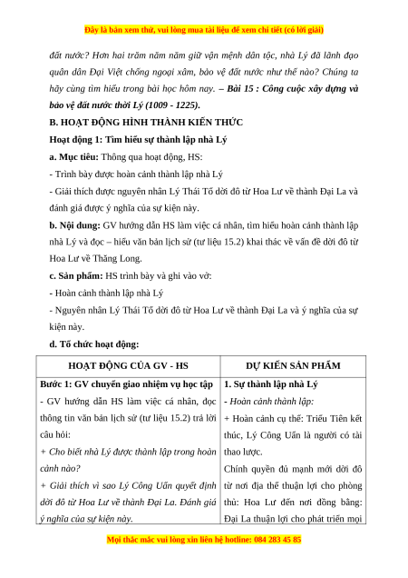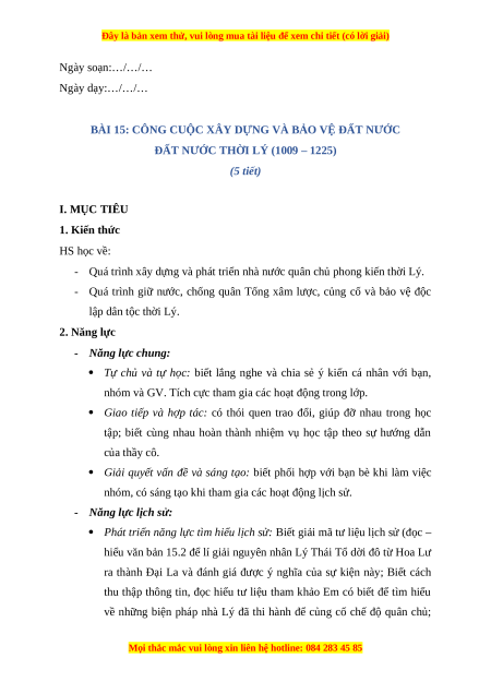 Giáo án Bài 15 Lịch sử 7 Chân trời sáng tạo: Công cuộc xây dựng và bảo vệ đất nước thời Lý (phiên bản 2)