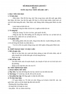 NƯỚC ĐẠI NGU THỜI HỒ(1400 -1407 ) I. MỤC TIÊU BÀI HỌC 1. Về kiến thức
