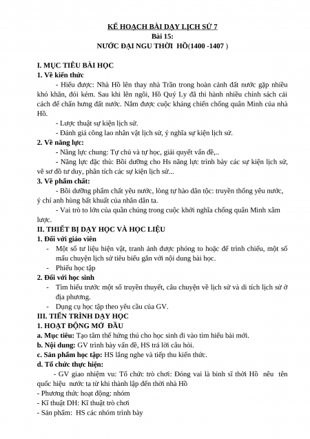 KẾ HOẠCH BÀI DẠY LỊCH SỬ 7 Bài 15: