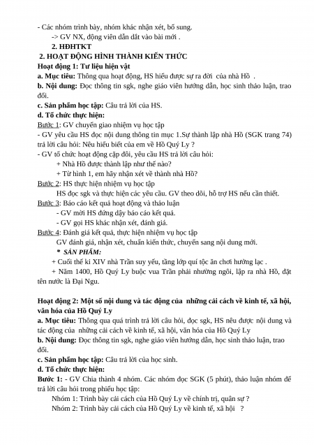 a. Mục tiêu: Thông qua hoạt động, HS hiểu được sự ra đời của nhà Hồ .