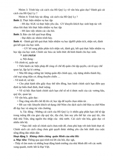 Nhóm 3: Trình bày cải cách của Hồ Quý Ly về văn hóa giáo dục? Đánh giá cải cách của Hồ Quý Ly ?