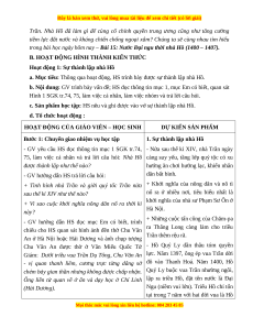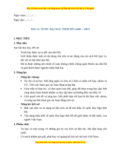 BÀI 15: NƯỚC ĐẠI NGU THỜI HỒ (1400 – 1407) I. MỤC TIÊU 1. Mục tiêu Sau bài học này, HS sẽ: