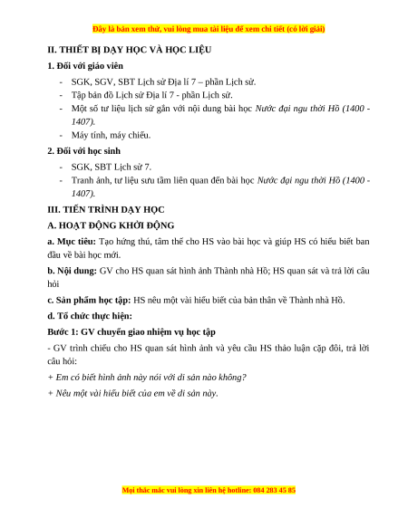 II. THIẾT BỊ DẠY HỌC VÀ HỌC LIỆU