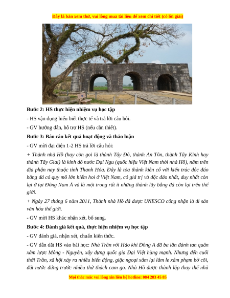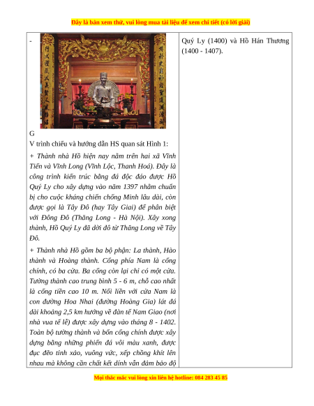 b. Nội dung: GV cho HS quan sát hình ảnh Thành nhà Hồ; HS quan sát và trả lời câu