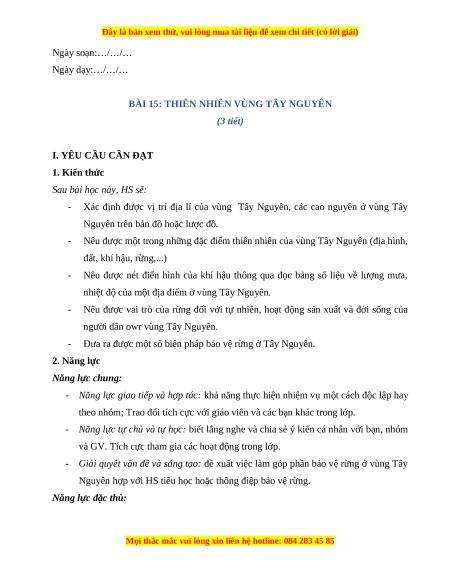 BÀI 15: THIÊN NHIÊN VÙNG TÂY NGUYÊN (3 tiết)