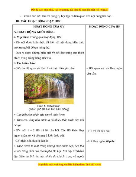 III. CÁC HOẠT ĐỘNG DẠY HỌC