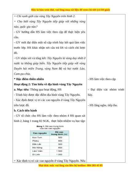Hoạt động 2: Tìm hiểu về địa hình vùng Tây Nguyên
