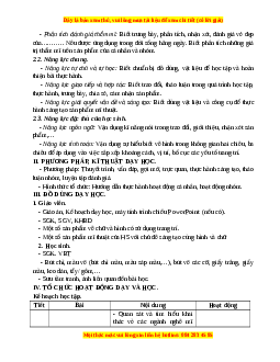 - Phương pháp: Thuyết trình, vấn đáp, gợi mở, trực quan, thực hành sáng tạo, thảo