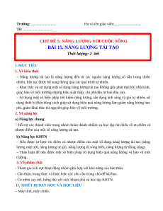 Giáo án Bài 15: Năng lượng tái tạo Khoa học tự nhiên 9 Chân trời sáng tạo