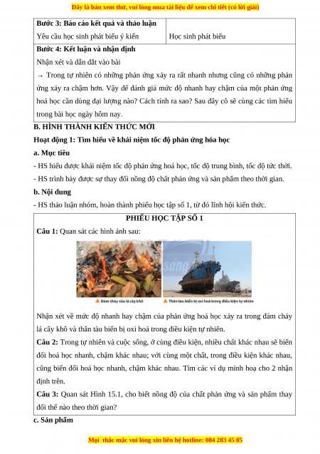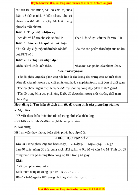 - Giao tiếp và hợp tác: Sử dụng ngôn ngữ khoa học để diễn đạt về tốc độ phản ứng;