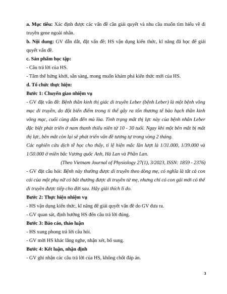 a. Mục tiêu: Xác định được các vấn đề cần giải quyết và nhu cầu muốn tìm hiểu về di truyền gene ngoài nhân.