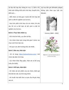 - Tại lớp, GV chia HS thành các nhóm, mỗi nhóm 3 - Năm 1909: Carl Correns đã phát