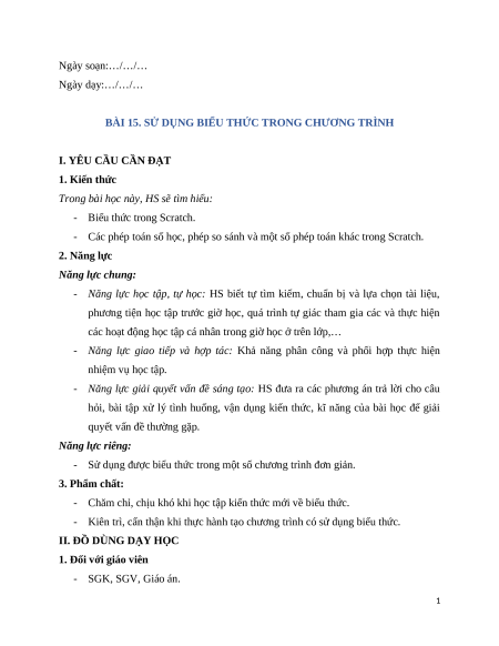 - Sử dụng được biểu thức trong một số chương trình đơn giản. 3. Phẩm chất: