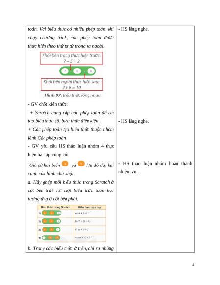 a. Mục tiêu: HS nhận biết được biểu thức trong Scratch.