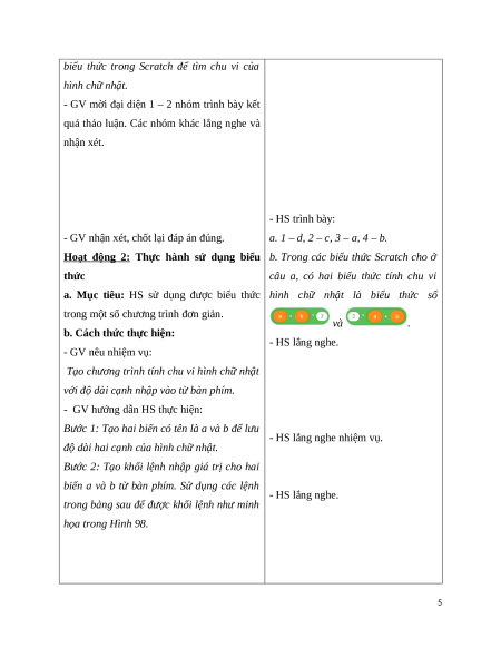 Giáo án Bài 15: Sử dụng biểu thức trong chương trình Tin học lớp 5 Kết nối tri thức