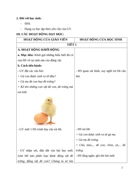 - Nêu được tên một số động vật đẻ trứng, đẻ con và các hình thức sinh sản của