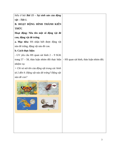 nào đẻ trứng, động vật nào đẻ con. b. Cách thực hiện: