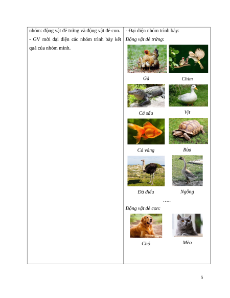 - Năng lực giải quyết vấn đề và sáng tạo: Phân biệt được động vật đẻ con và đẻ
