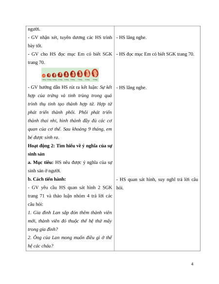 được quá trình giúp các thế hệ trong mỗi gia đình nối tiếp nhau. b. Cách tiến hành: