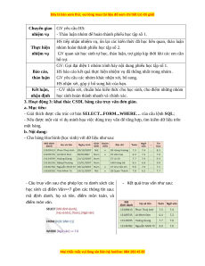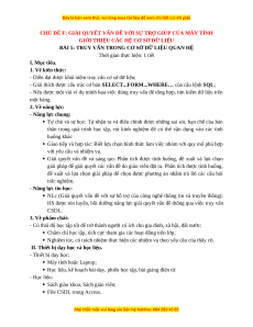 HS được rèn luyện, bồi dưỡng năng lực giải quyết vấn đề thông qua việc truy vấn CSDL. 3. Về phẩm chất:
