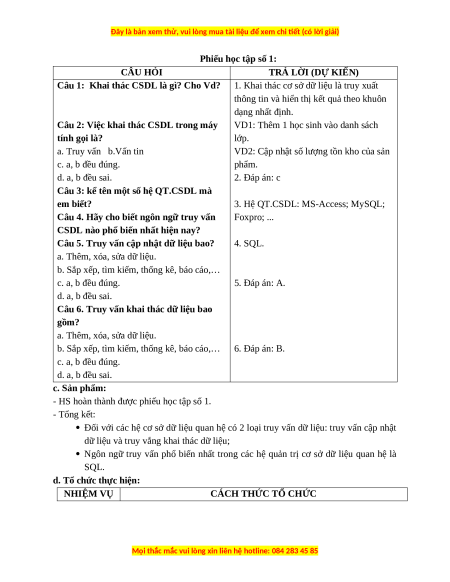 b. Sắp xếp, tìm kiếm, thống kê, báo cáo,… 6. Đáp án: B. c. a, b đều đúng. d. a, b đều sai. c. Sản phẩm: