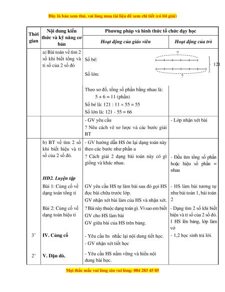 Giúp học sinh củng cố kĩ năng giải bài toán về tìm hai số khi biết tổng (hoặc hiệu) và tỉ số của hai số đó.