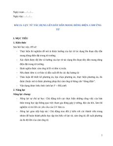BÀI 15: LỰC TỪ TÁC DỤNG LÊN DÂY DẪN MANG DÒNG ĐIỆN. CẢM ỨNG TỪ I. MỤC TIÊU 1. Kiến thức