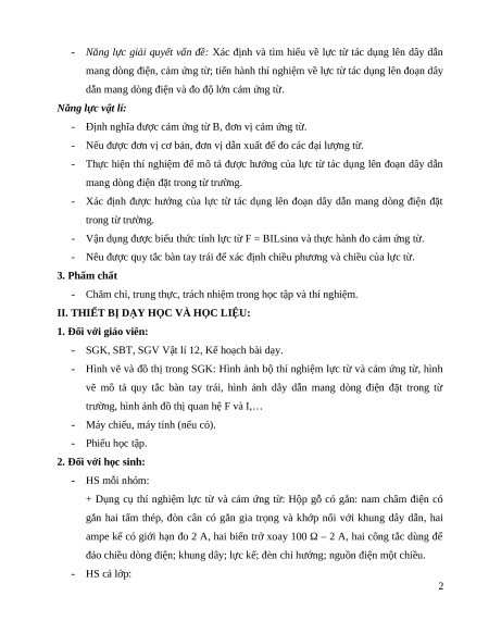 - Vận dụng được biểu thức tính lực F = BILsinθ. 2. Năng lực