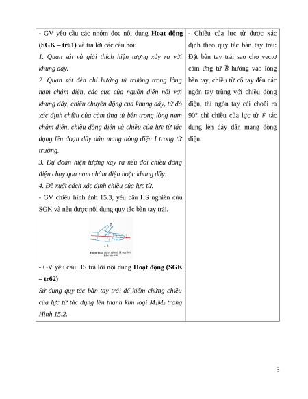 của bản thân để hình dung về lực từ và cảm ứng từ, từ đó GV định hướng HS vào nội dung của bài học.