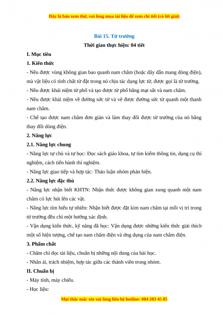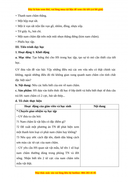 Giáo án Bài 15 Vật lí 7 Cánh diều: Từ trường