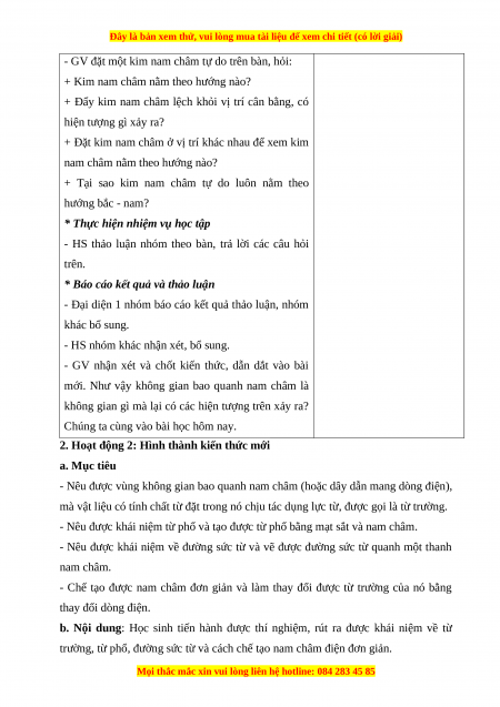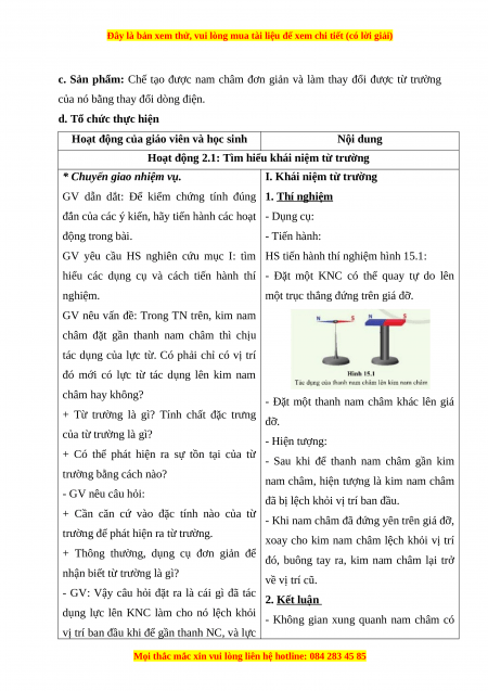 b. Nội dung: Học sinh tiến hành được thí nghiệm, rút ra được khái niệm về từ