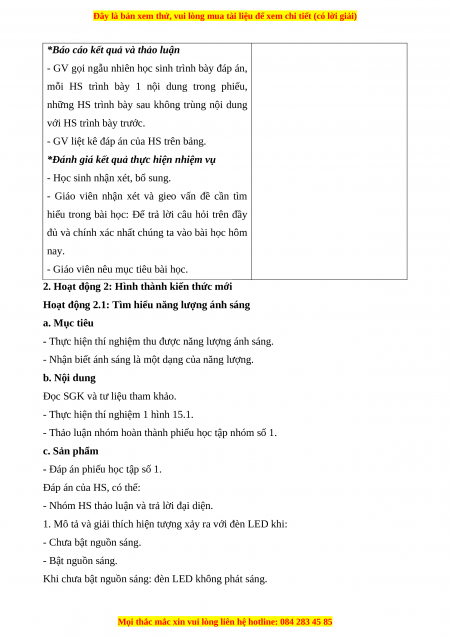 Hoạt động 2.1: Tìm hiểu năng lượng ánh sáng a. Mục tiêu