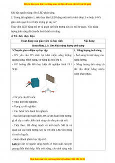 - Thực hiện thí nghiệm thu được năng lượng ánh sáng; Từ đó, nêu được ánh sáng là