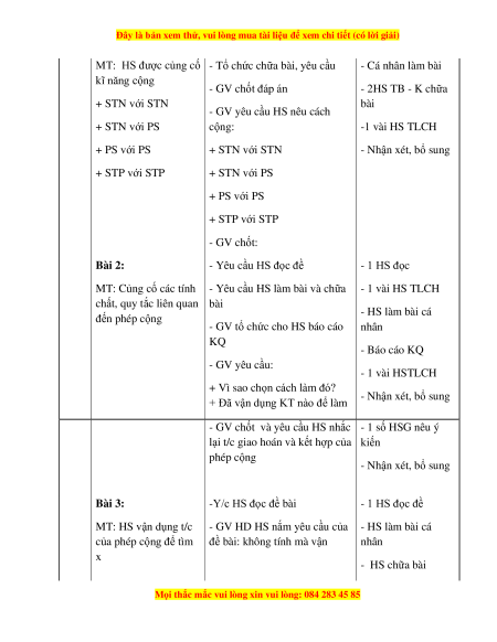 - Củng cố kĩ năng thực hành phép cộng các STN, STP, PS 2. Kĩ năng.