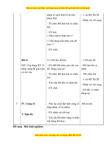 - Yêu cầu HS đổi vở chữa bài - Nhận xét, bổ sung - GV chốt - HS đổi vở chữa đúng/sai 3’ IV. Củng cố