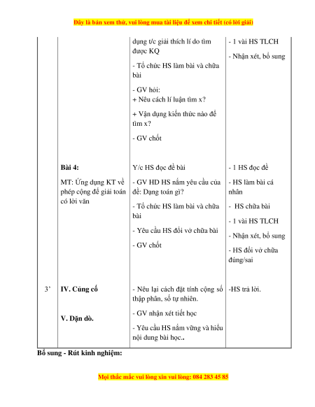 thập phân, số tự nhiên. - GV nhận xét tiết học V. Dặn dò.