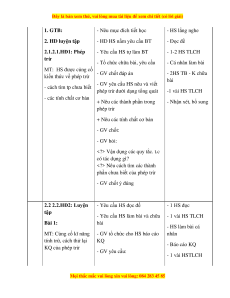 - Nêu mục đích tiết học - HS lắng nghe 2. HD luyện tập - HD HS nắm yêu cầu BT - Đọc đề 2.1.2.1.HĐ1: Phép - Yêu cầu HS tự làm BT - 1-2 HS TLCH trừ