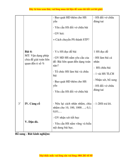 nhẩm cho 10, 100, 1000….; 0,1; 0,01;… - GV nhận xét tiết học V. Dặn dò.