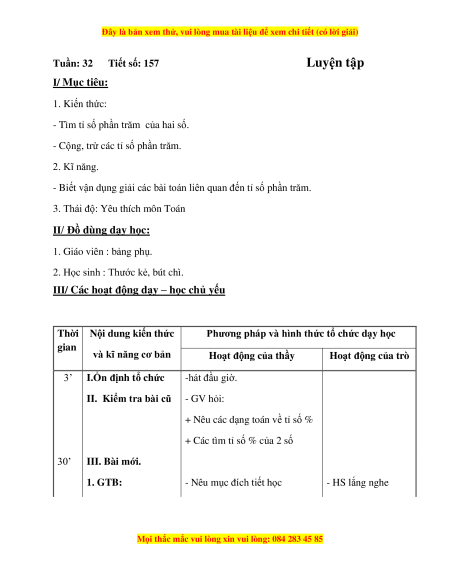 Tuần: 32 Tiết số: 157 Luyện tập I/ Mục tiêu: 1. Kiến thức: