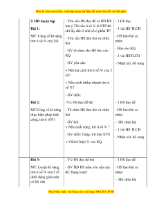 - GV chốt: Cộng, trừ như STN - Nhận xét, bổ sung + Viết kí hiệu % vào KQ Bài 3: - Y/c HS đọc đề bài - 1 HS đọc đề MT: Luyện kĩ năng